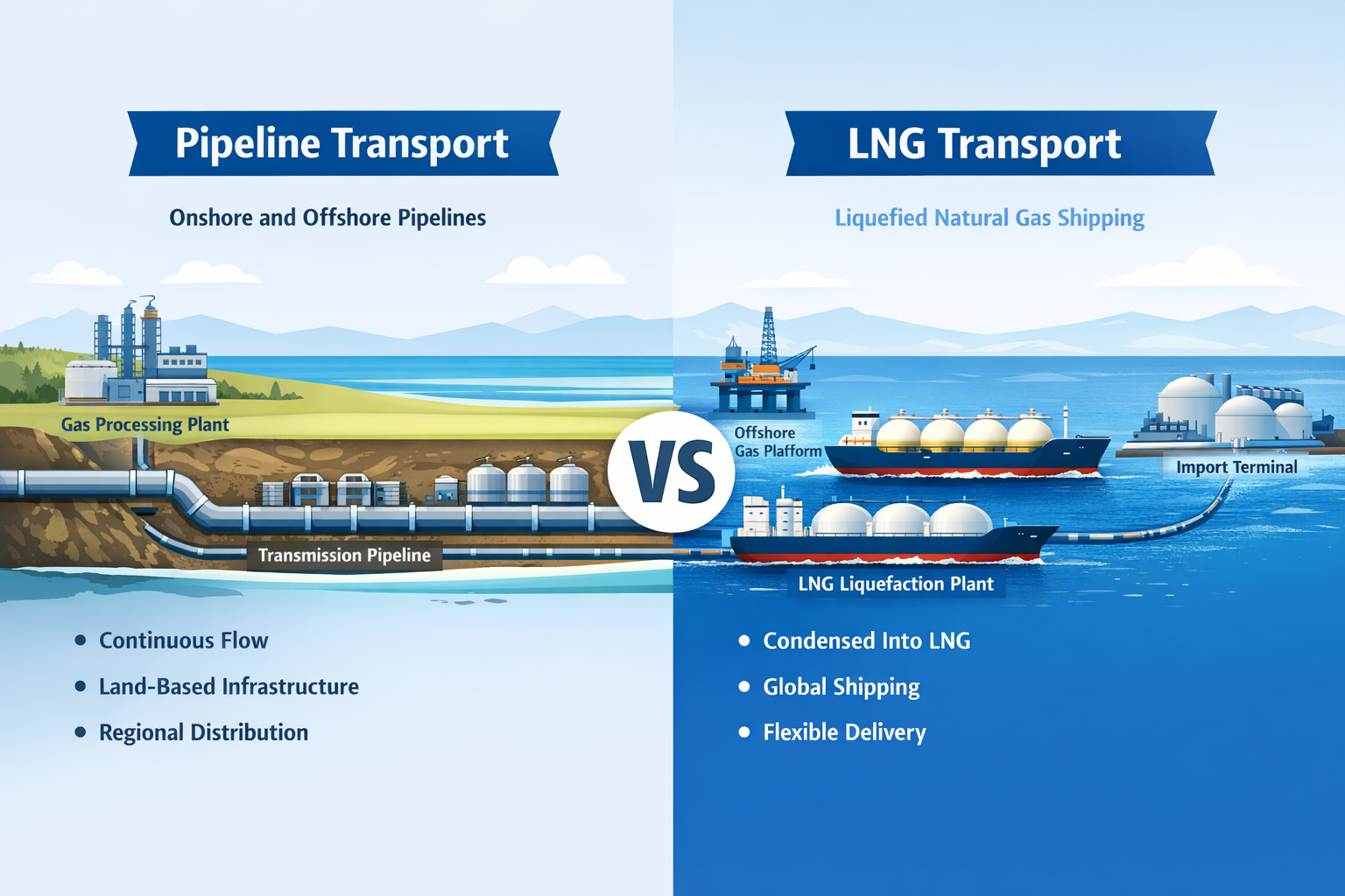 In the Arctic, vast distances, offshore resources, and limited infrastructure make LNG increasingly important. While pipelines are used in some regions, LNG transport enables access to global markets where pipeline connections are not practical.